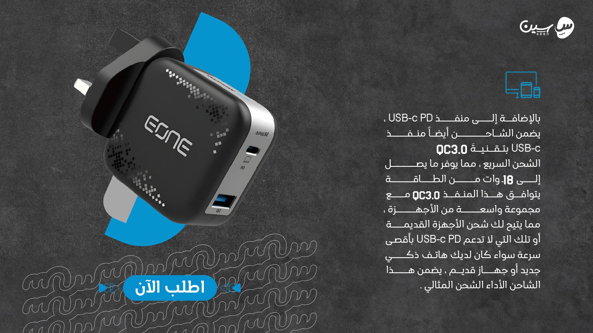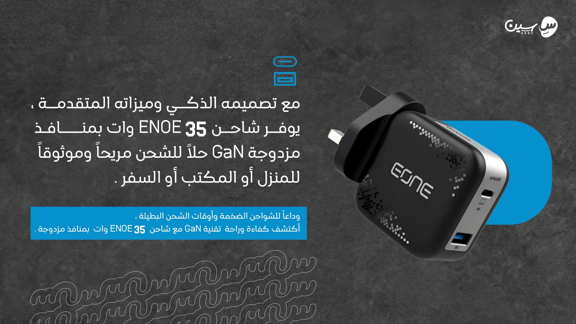 متجر سين SEEN Store وفر لكم الشاحن الجدراي السريع بقوة 35 واط بتقنية GaNاستمتع بتجربة شحن فعّالة مع شاحن الحائط السريع GaN بقوة 35 واط وثنائية المنافذ...